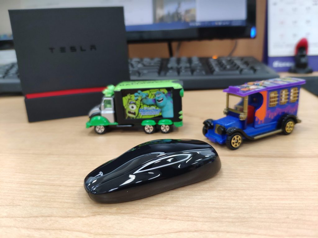 在 2017年的一個中午,我不小心逛了Mobile01看到大家瘋狂討論特斯拉,看一下相關文章,我就在Tesla官網下訂 Model 3的預購單,當時身上沒有錢也期許等到交車的那一刻,期許自己真的可以擁有這台車,所以讓我這段時間,開始努力認真的工作,培養自己的能力,這段時間當然也常常關注有關特斯拉的空間、妥善率、保養問題、稅金問題,越看越期待車子的到來,然後這段時間,車子還沒來,已經先開箱了車鑰匙,是不是很可愛,小小一台,如果小朋友看到真的會被拿去當玩具車,這玩具車沒輪胎,也沒有燈,希望小朋友會是選後面那兩台,哈哈哈哈。